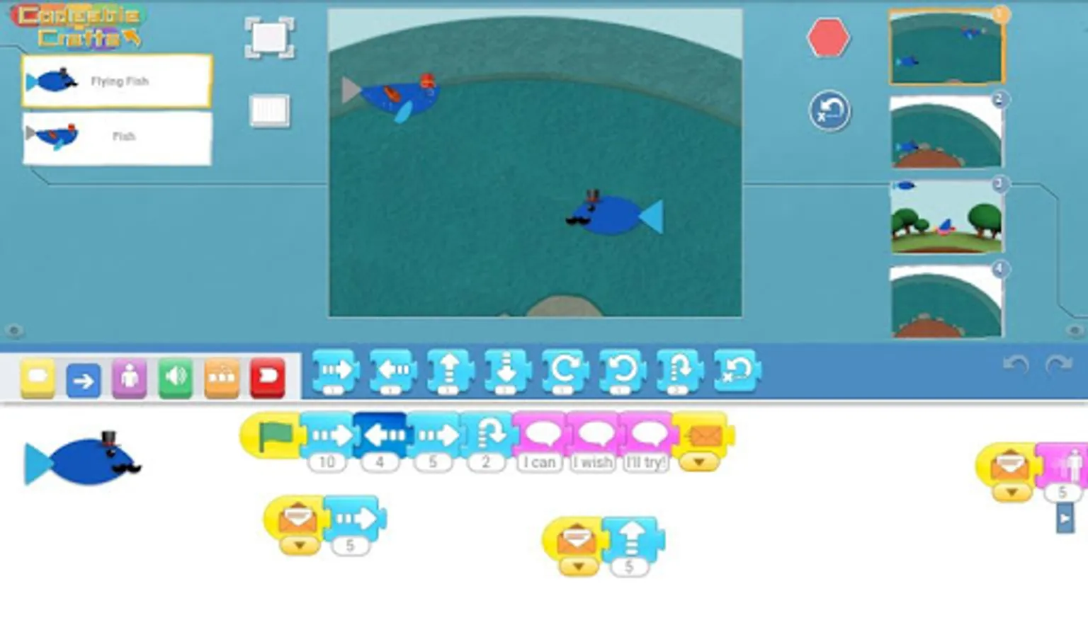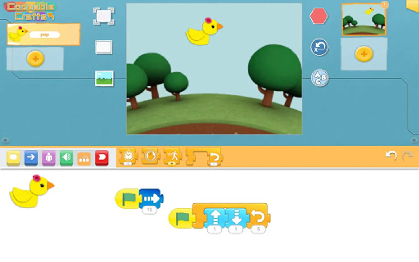 Codeable Crafts is an app for kids to create their imaginative stories by drawing and coding. Find a template of your favorite, use crayons and stickers to design your character. Your character will play around on the planet of Codeable Crafts. To tell a story of your character, use the block-based coding tool. Snap the blocks together to make a sequence, or use advanced blocks to make it interactive. With Codeable Crafts, kids can enrich their imagination and creativity, and learn the basic concept of computational thinking.