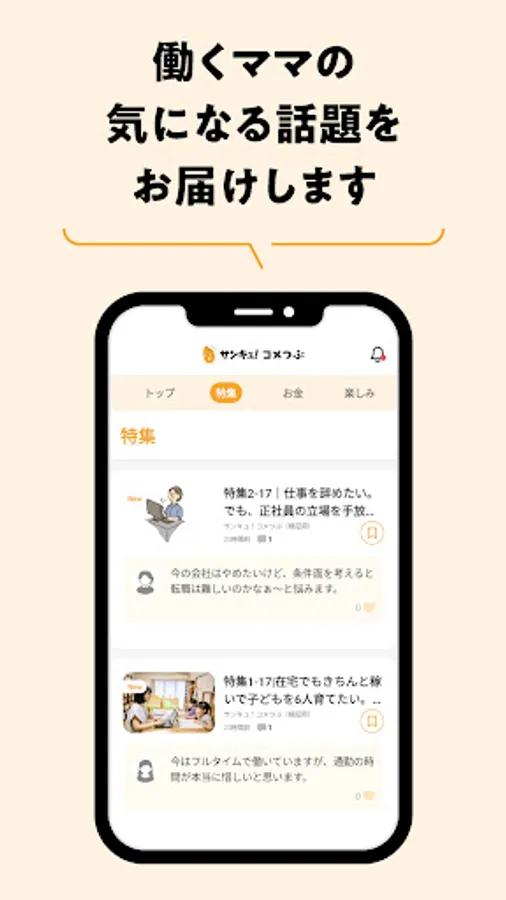 Life information magazine "Thank you! ] Produced. It is an app that everyone can find solutions to the daily problems of working mothers, things that are confusing at work and childcare, and solutions to worries.