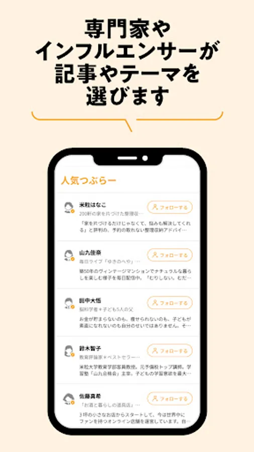 If you follow someone you like, you can receive the information they chose with easy-to-understand comments.