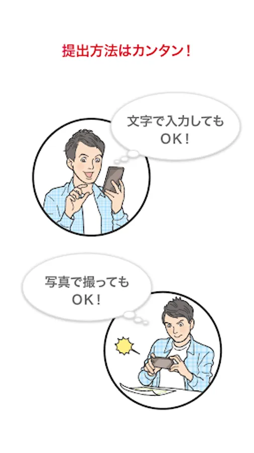 文字を入力して提出しても、書いたものを写真で撮って提出してもOKです。