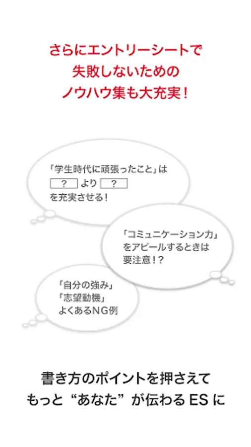 あなたの強みをアピールするための書き方ノウハウが満載。自分の強みの見つけ方、説得力ある志望動機の書き方、自己PRでよくあるNG例などすぐに役立つものばかりです。