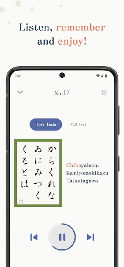 The app has the functions necessary for reciting Hyakunin-isshu.