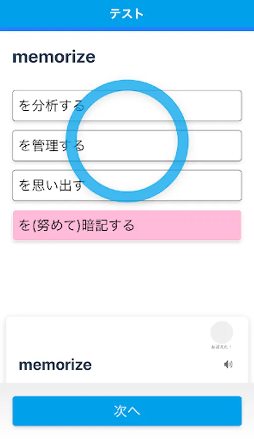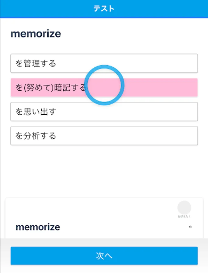 In the "Vulnerability Overcoming Test", you can intensively learn the wrong word in the "Test".