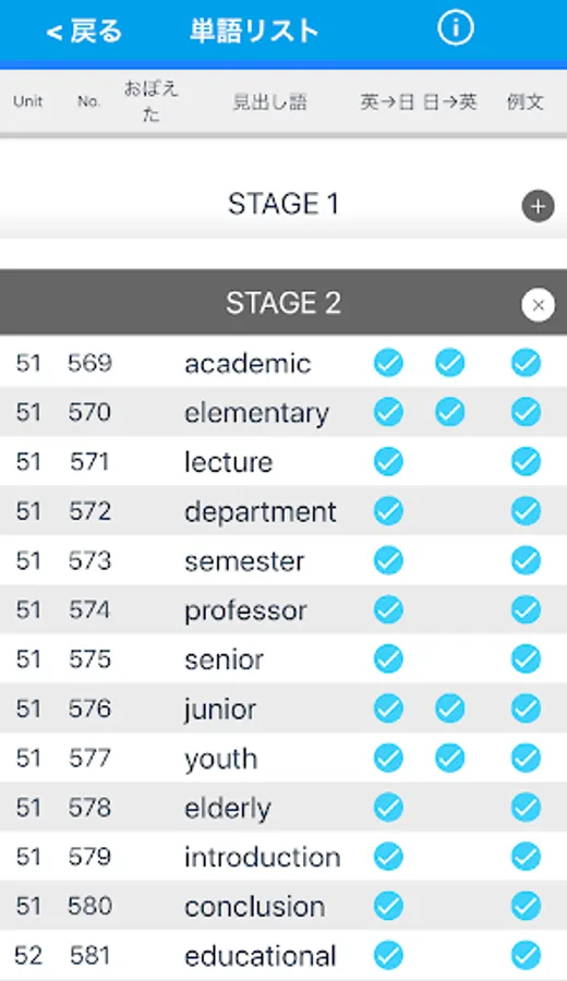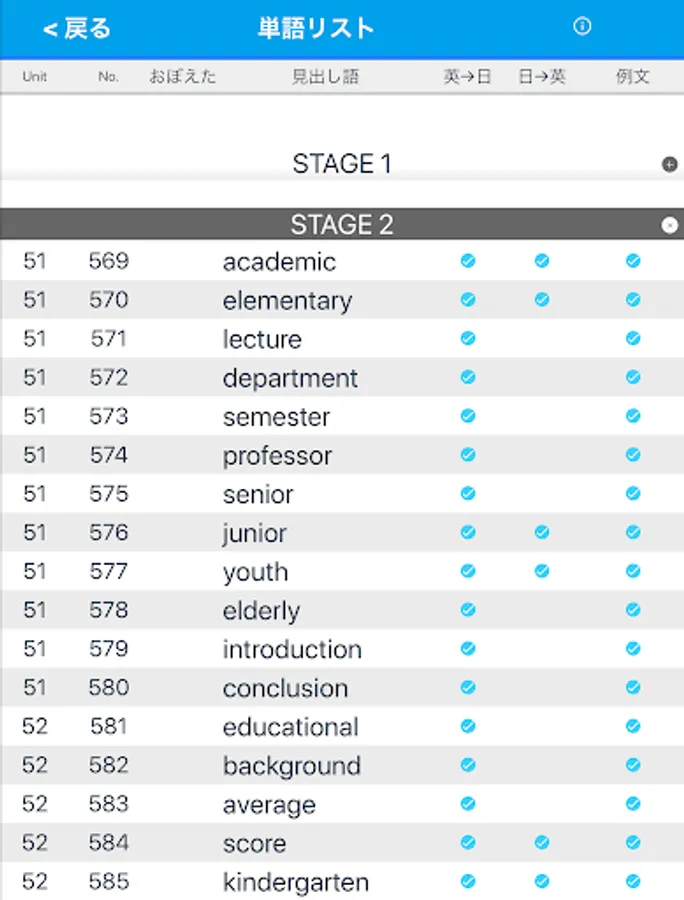 The "word list" displays a list of all headwords included in the vocabulary. Tap a headword to see details and audio.
