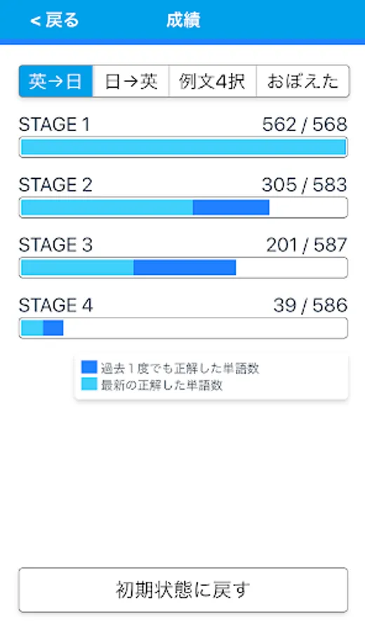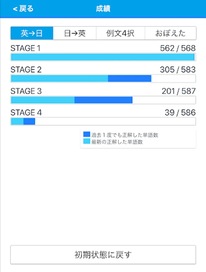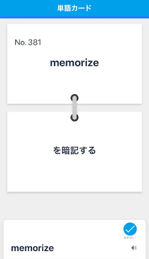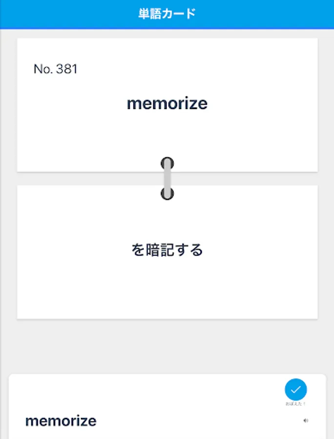 By using the "word card" function, you can learn English words recorded in the vocabulary from both "Japanese → English" and "English → Japanese".