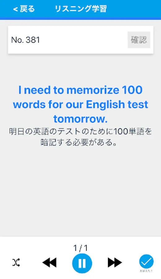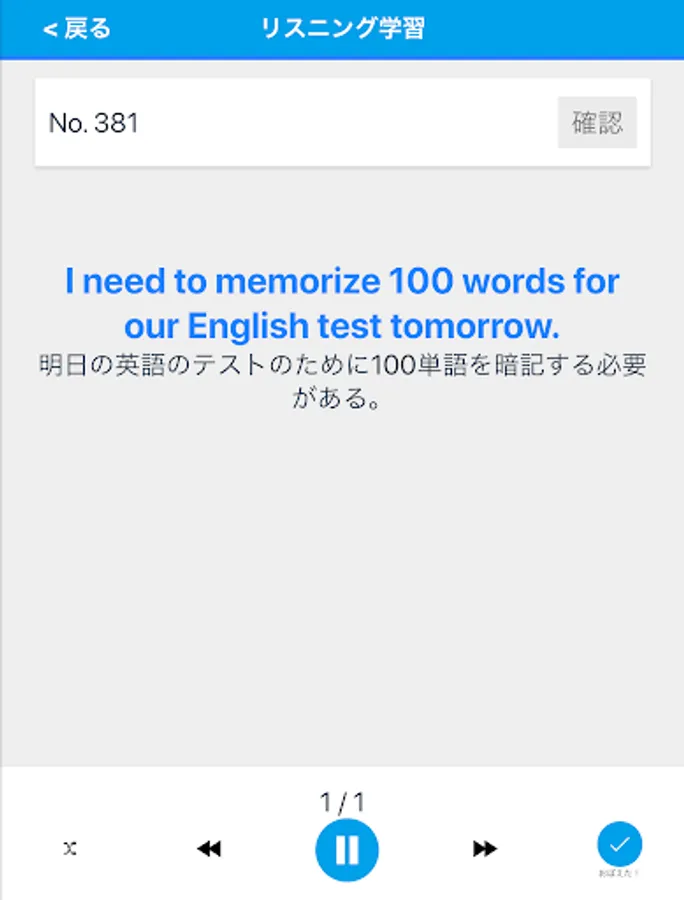 You can check the details of the headword by tapping "Confirm" at the top right of the listening screen.