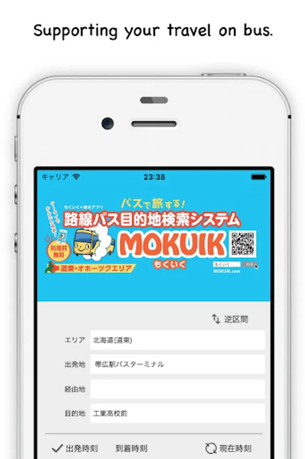 Mokuik is a fixed-route bus search service that lets you search for the best bus route by supplying a bus station name, an address, or a destination, or by selecting it on a map.