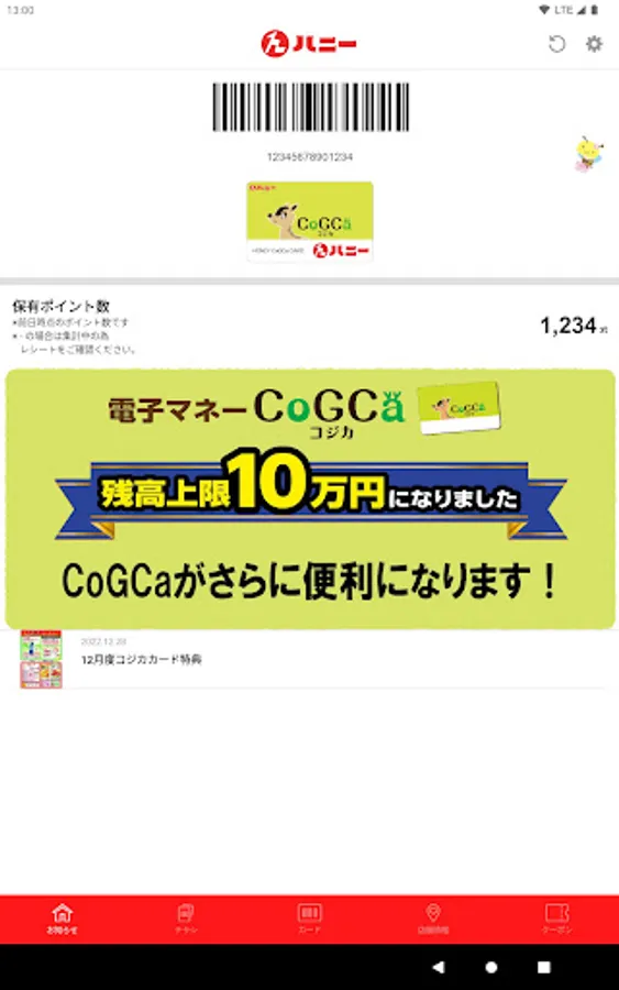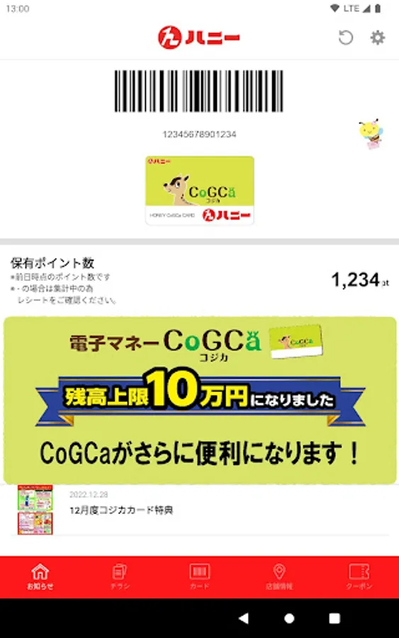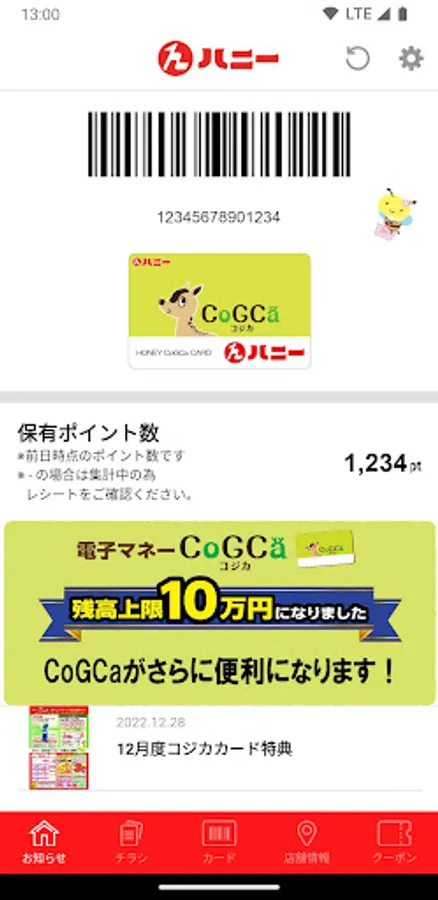 A barcode will be displayed when you link your Honey Kojika card to the app.