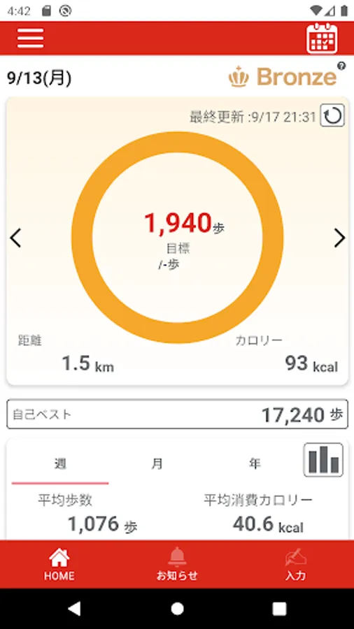 The daily calorie consumption (approximate) is displayed according to the number of steps taken, height and weight.