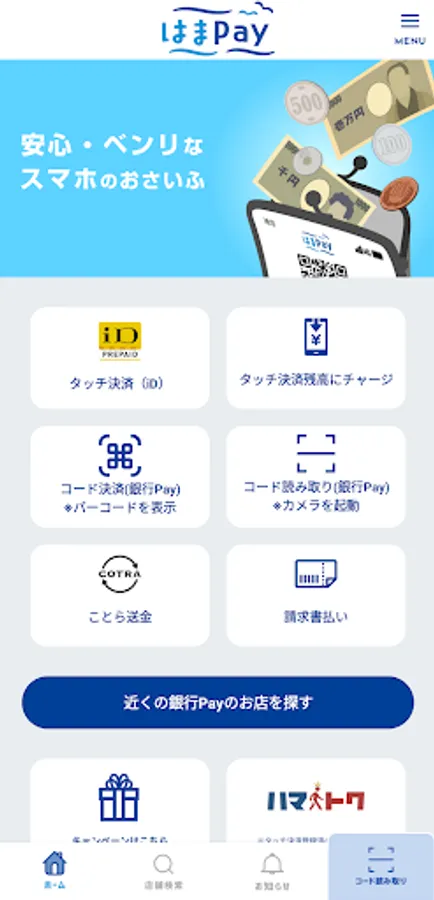 It can be used at stores with the Ginko Pay mark, such as Hama Pay and Yucho Pay, and stores with the Smart Code mark.