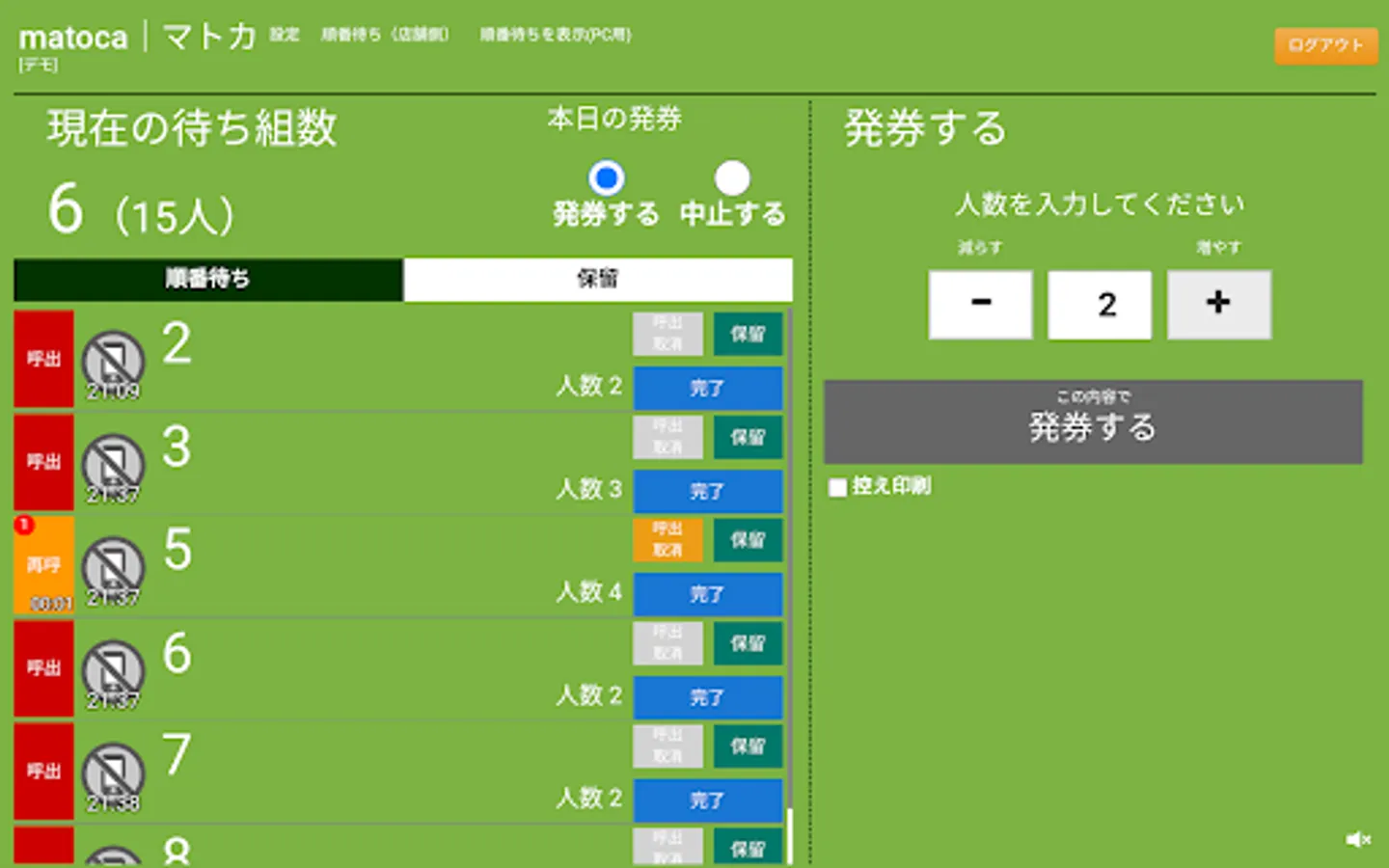 You can print the reception slip and call the customer with one tablet!