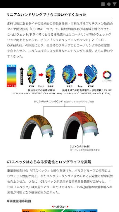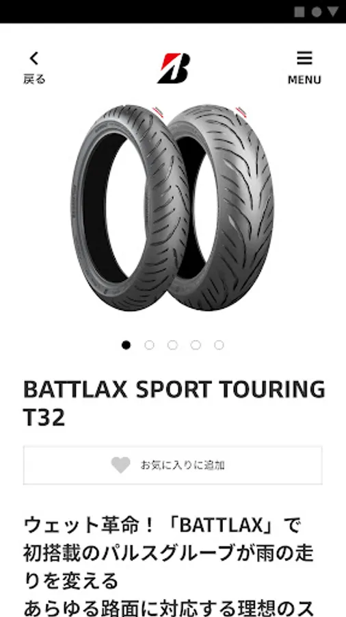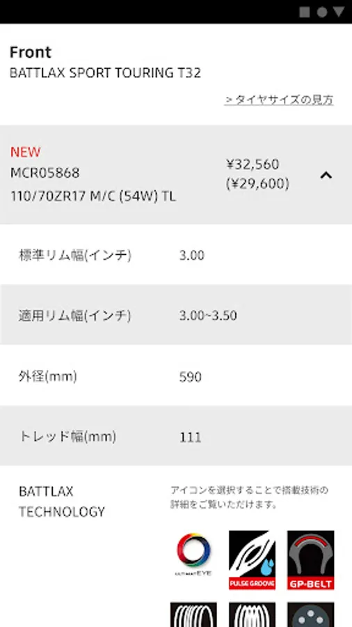 It is a catalog application of Bridgestone motorcycle tires such as BATTLAX. You can search for suitable tires by tire size and motorcycle model, and easily search for product information and product-related videos by pattern on your smartphone.