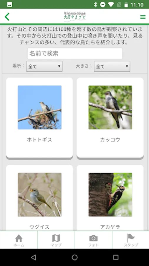 火打山登山道で観察できる鳥類、植物を図鑑形式で検索できます。