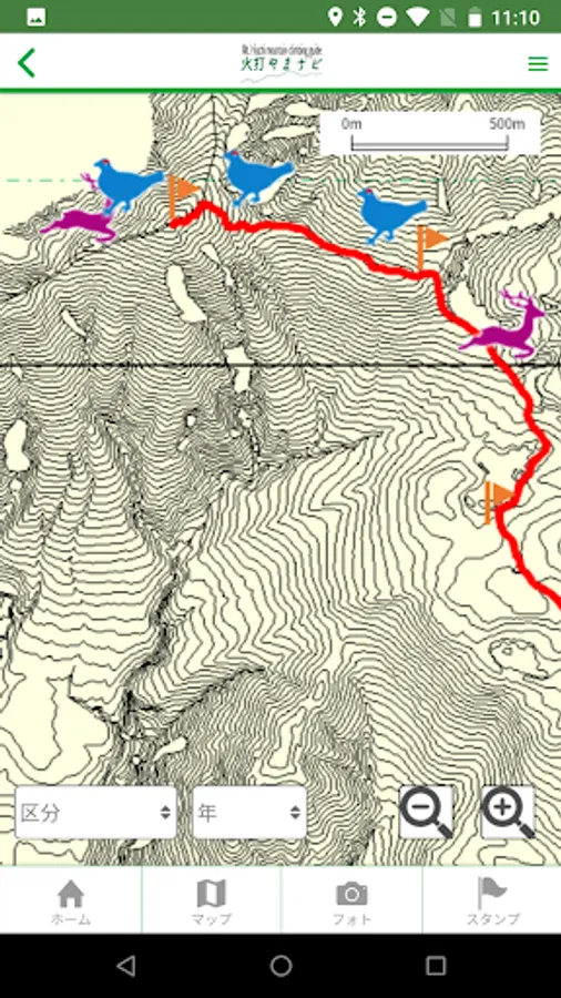 国立公園内の登山道周辺の地図がダウンロードされます。この地図上での現在位置が確認出来ます。