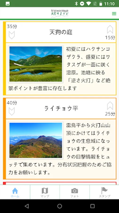 登山道に設置されたビーコンの電波を受信すると、その周辺での登山マナーや自然情報(ライチョウの生態、登山道付近で見られる高山植物、その他)をお知らせします。