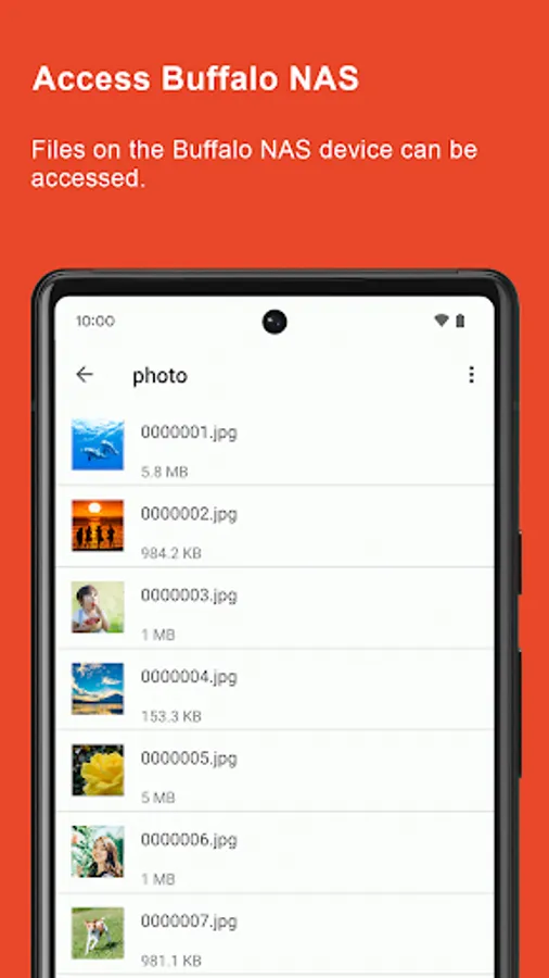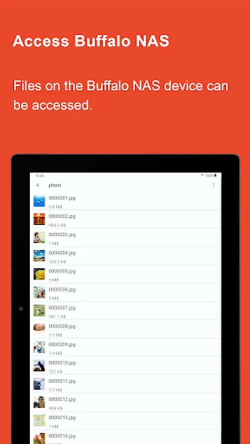 • File download: save files onto your mobile device from your Buffalo NAS device. Before a long flight, download movies and music and enjoy them in the air.