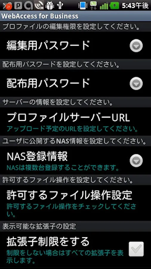 - Profile (configuration file): It can apply the exactly same settings to multiple devices. Make a profile for each division or office, and the installation of WebAccess for Business is so much easy!