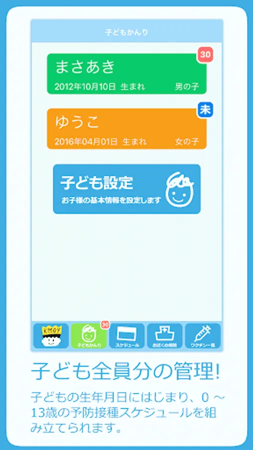②子ども全員分の予防接種管理