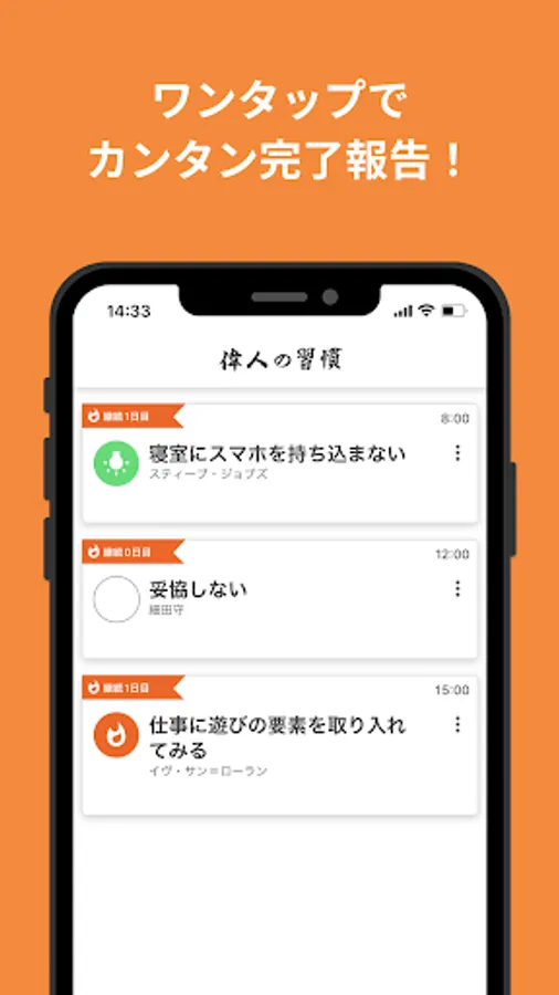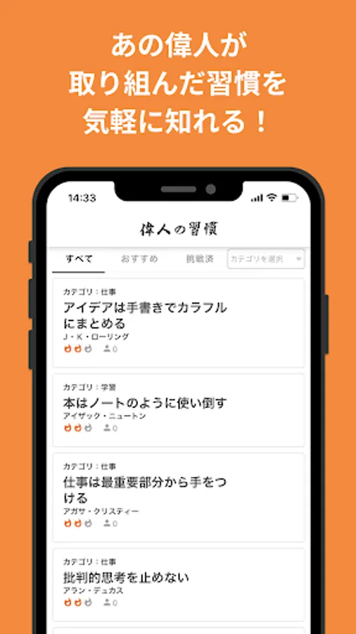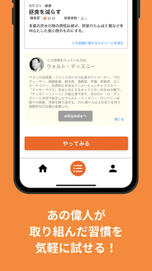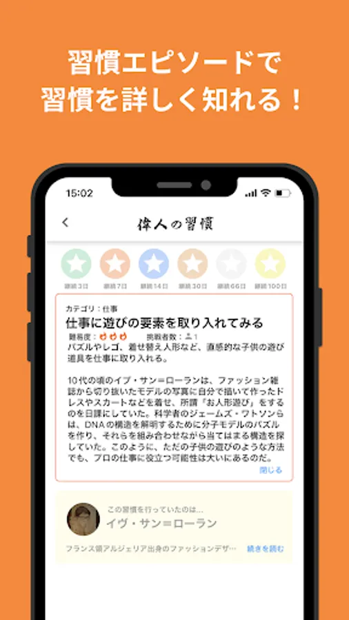 "Great Man's Habit" is an app that you can easily know the custom that the great man was working on with the largest number of customs in Japan.