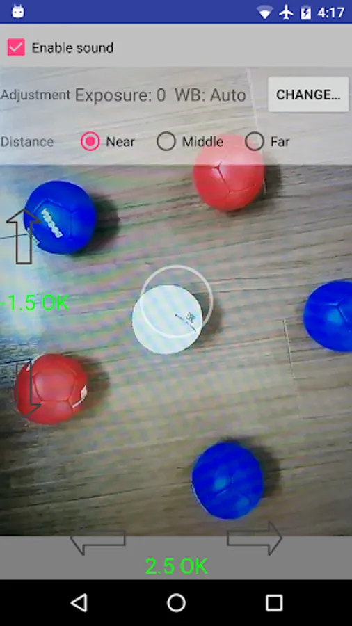 When the app detects the jack ball, the pitch of the sound becomes higher. If you hold the device steady for a while, the photo will be taken automatically.