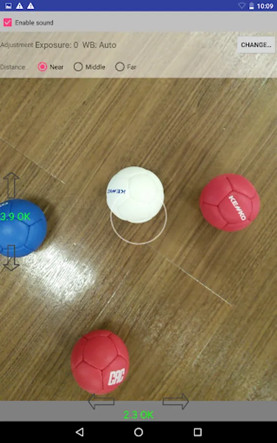 The app automatically takes a photo and measures the distances between the jack ball and color balls, then shows images and data that assist to judge winning or losing.