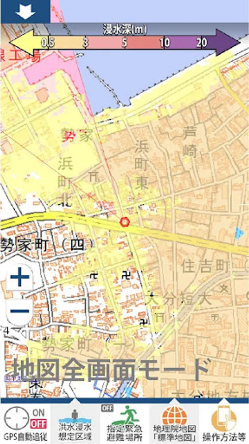 "Oita Flood Hazard App" (hereinafter referred to as "this app") is an app that displays damage estimation information and evacuation site information in order to learn about disaster prevention and disasters in advance. When using in the event of a disaster, please understand that the map will not be displayed due to the interruption of the communication line and that the displayed contents of the application are assumed information, and after confirming the actual damage situation, evacuation information of the government and information Please evacuate based on your own judgment.