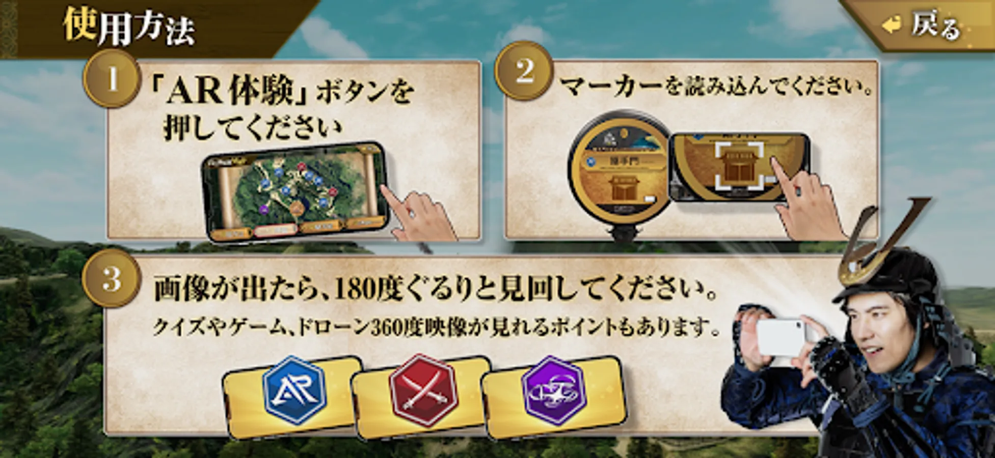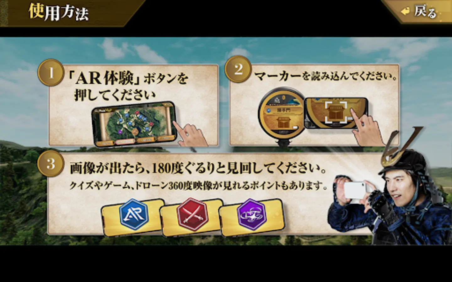 In addition to the scenery of the castle, navigation functions, games, and quiz functions are also installed, so you can feel the history while having more fun.