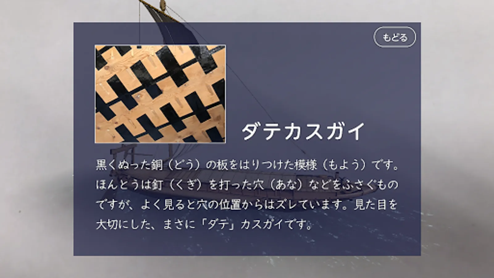When you hold your camera over the "Biwako mark", a palm-sized Maruko ship will appear, allowing you to know the characteristics of the Maruko ship.