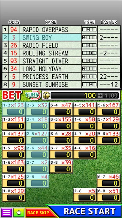 Reference the racing card and bet which horses will be the winner and the first runner up.