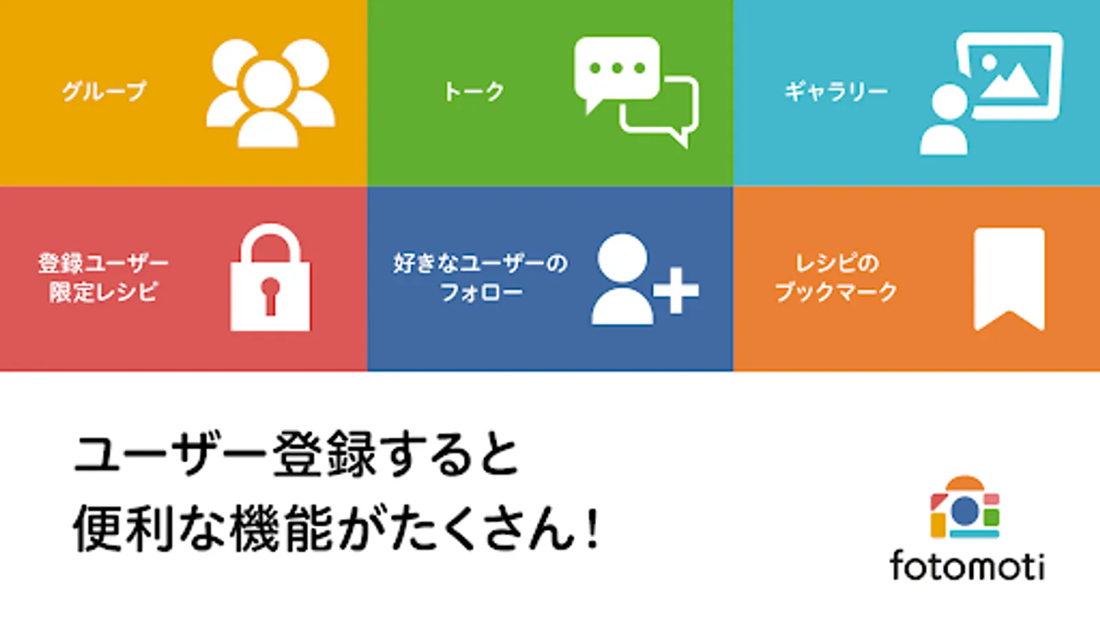 A small community where you can gather on various themes. You can collect photo recipes in groups, collect the works of members to create a gallery, and enjoy talking with members alone.