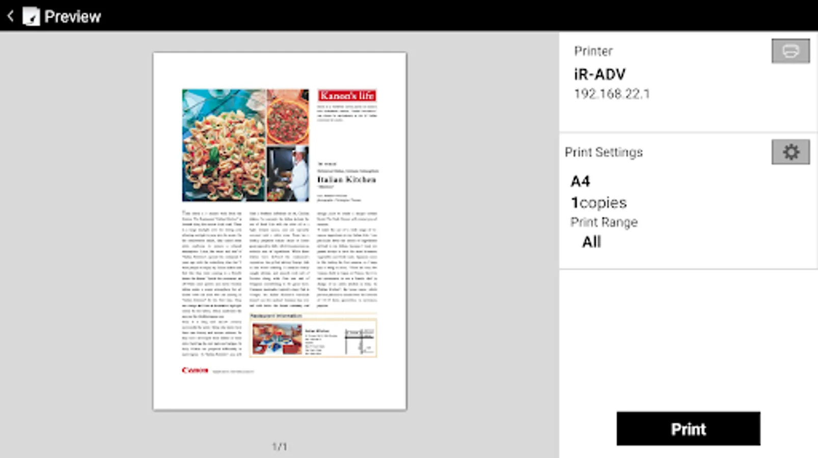 Canon PRINT Business is a free application that enables you to use a Canon laser multi-function device or laser printer to print photographs and documents, read scanned data, and upload to cloud storage services, etc. from an Android terminal.