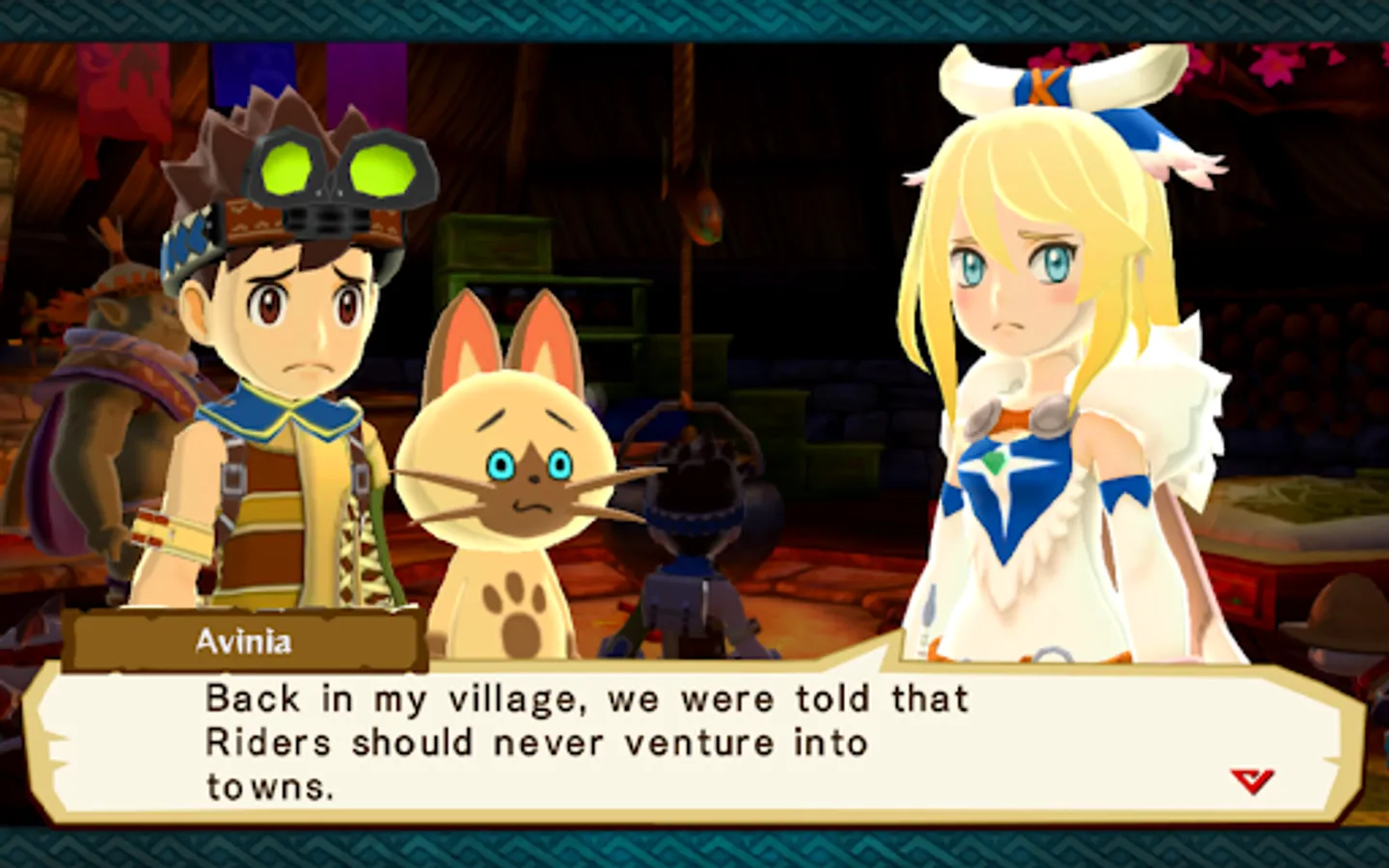 The hero receives a Kinship Stone from the Village Chief and officially becomes a Rider. Cheval and Lilia both leave the village, each on their own path. The hero, though separated now from childhood friends, partners up with the cheerful Navirou, and embarks upon a new adventure into the world of hunters.