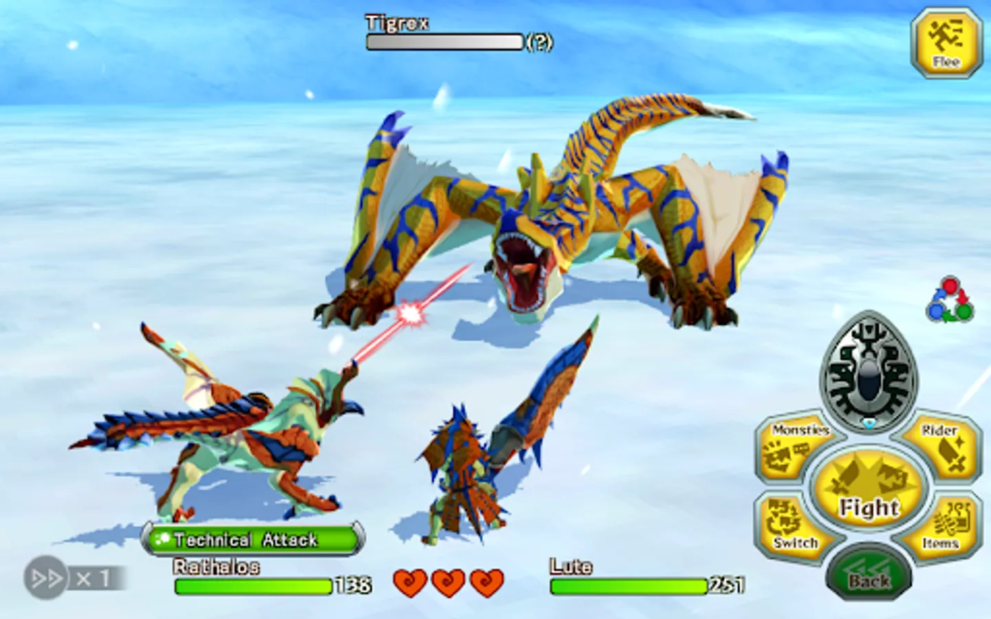 The egg hatches, revealing a baby Rathalos, a flying wyvern also known as "the King of the Skies." The trio affectionately name him "Ratha," and take him back to the village.