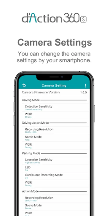 The d’Action 360 S application is used for dash camera “d’Action 360 S” (DC5000A) produced by CAR MATE.
