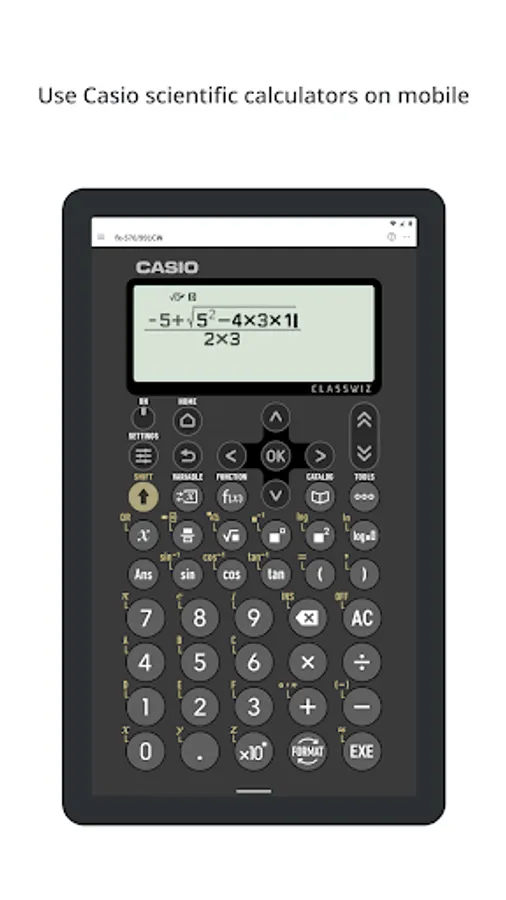 The app is operated in the same way as Casio’s ClassWiz scientific calculators.