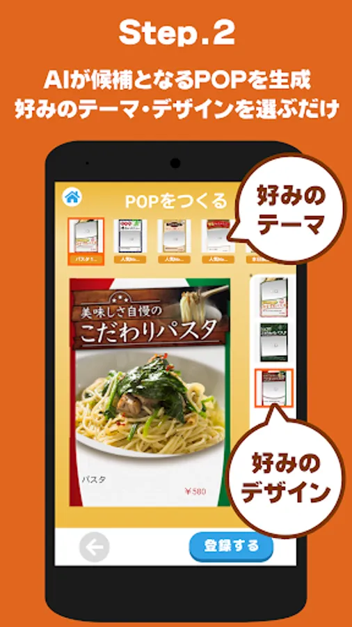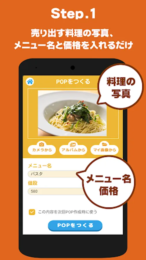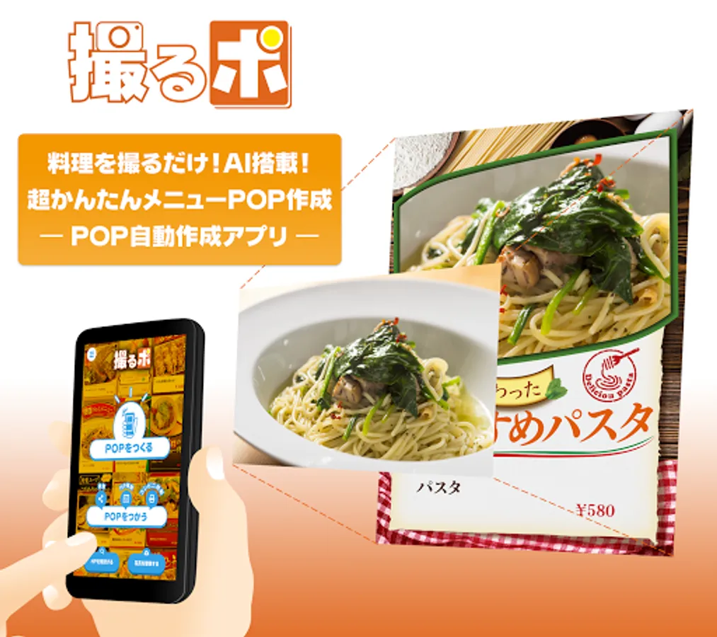 スマホで料理を撮影するだけでAIがメニュー紹介POPを自動で作ってくれる飲食店向けアプリです!