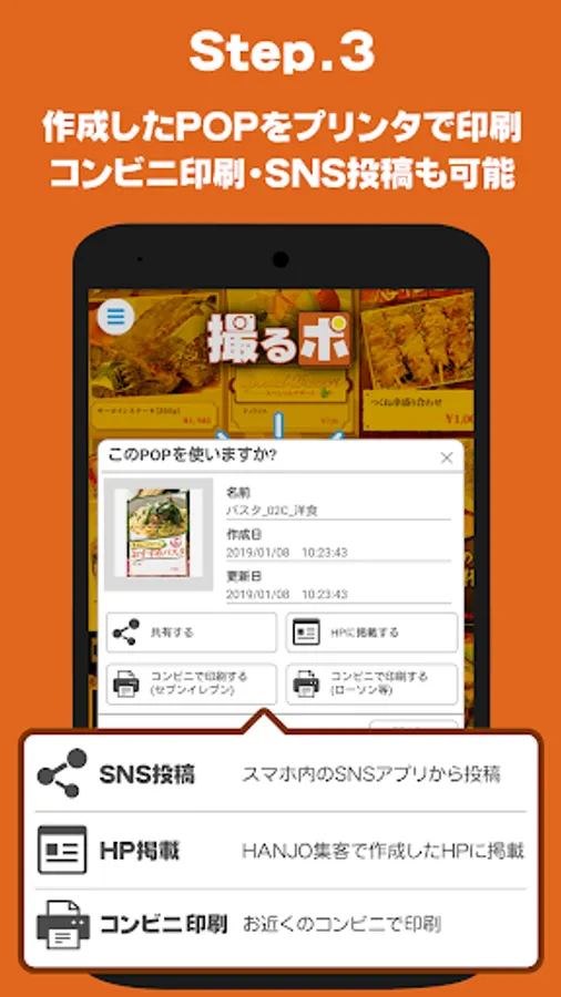 ◆作ったPOPはHANJO集客で作成したホームページやSNSへかんたん配信!