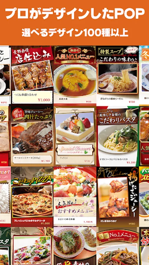 ◆POPのデザインはプロのデザイナーが作成!汎用的なものから料理特化まで勢ぞろい!