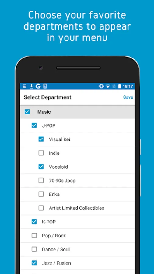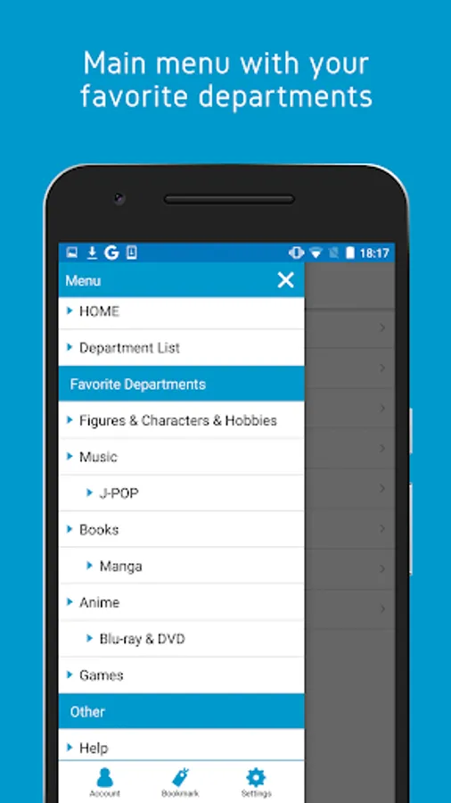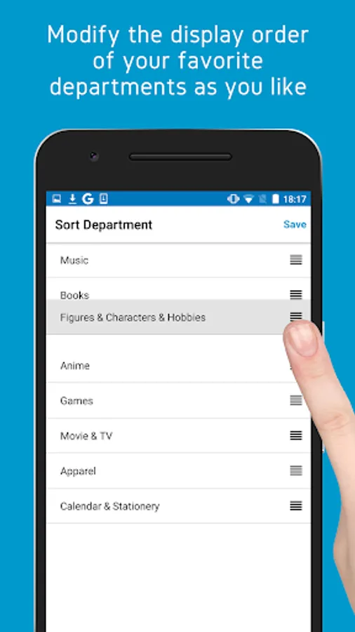 Choose your favorite departments to appear in your menu of the app and modify their display order as you like.