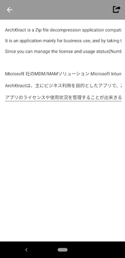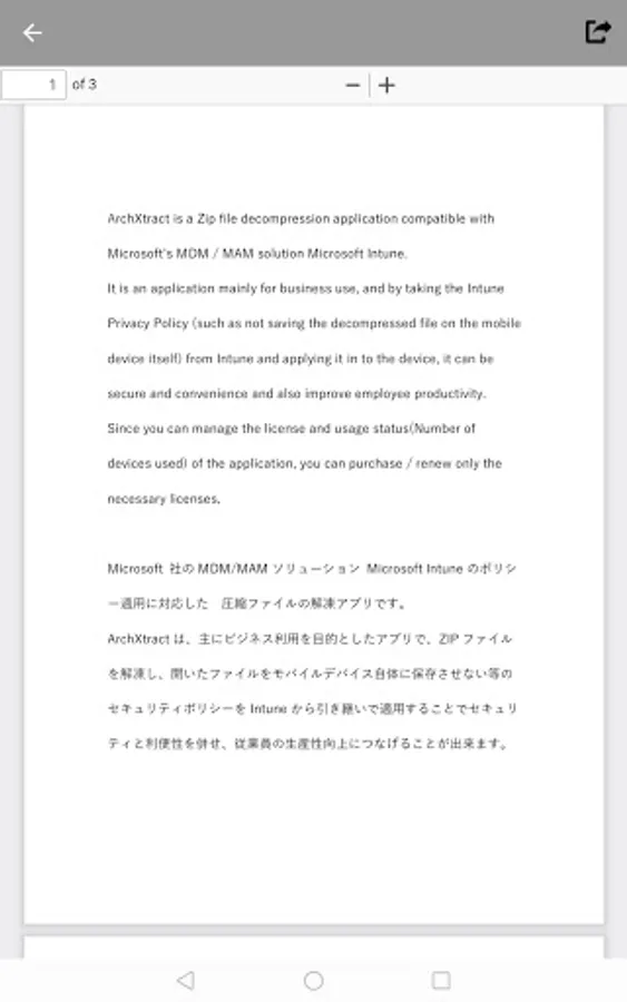 ArchXtract is used to decompress the zip files between the microsoft intune managed applications. It is the upgrade version of first intune managed decompression app 「ZipExtractor」.Now ArchXtract supports a wider variety of compression methods.