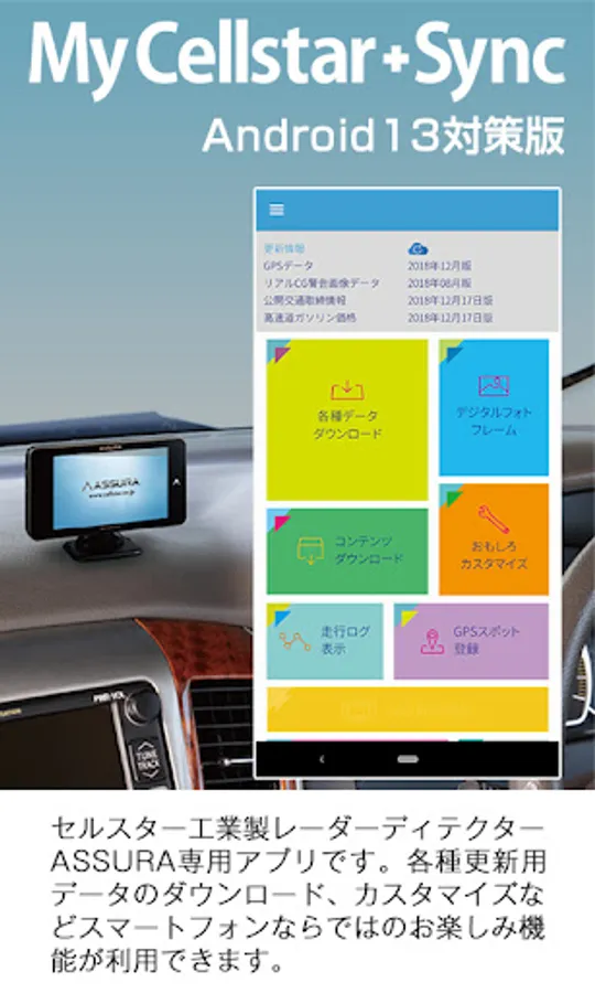 MyCellstar+Sync is a free app that allows you to conveniently and enjoyably use the Cellstar safety radar ASSURA and drive recorder.