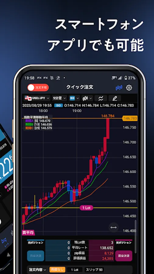Single orders, IFD, OCO, IFO, streaming, all settlement orders, etc., are possible as in the PC environment.