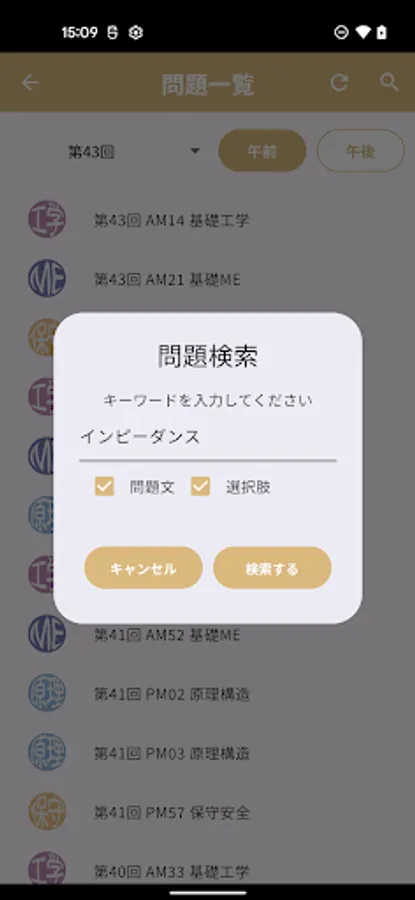 ・Keyword search of past questions (e.g. proximal tubule, operational amplifier, pacemaker)