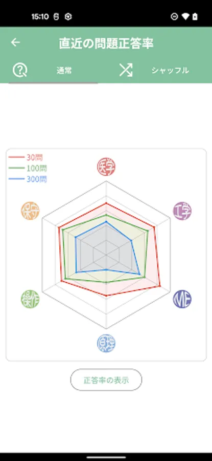・ Visualization function of learning effect by radar chart (Check the learning result in the image. Let's draw a "big and beautiful circle" as much as possible.)
