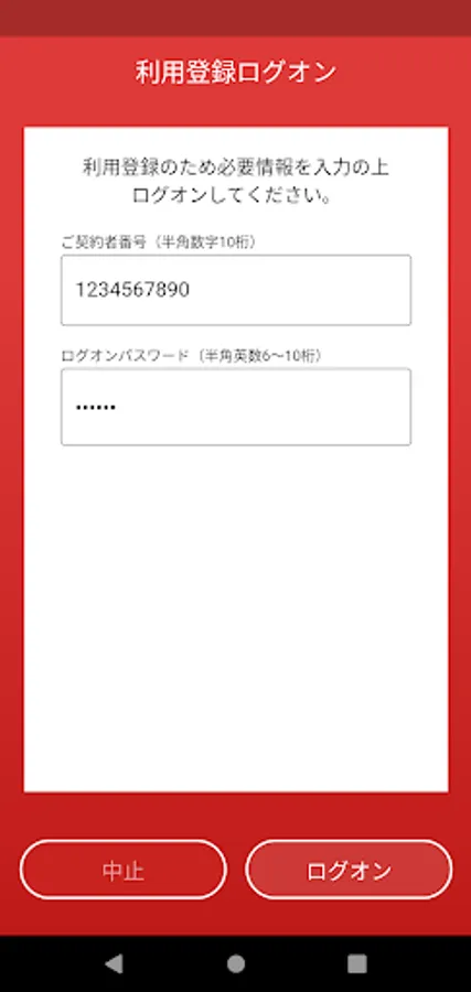2. Enter the contractor number and Internet banking logon password shown on the "Telephone Banking Contractor Card" and tap the "Logon" button.