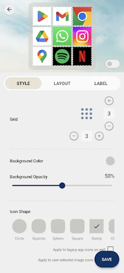 ✓ Choice of Icon Shapes (*) excluding Icon Packs