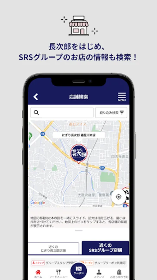 You can also search for SRS Group stores (Washoku Sato, etc.).