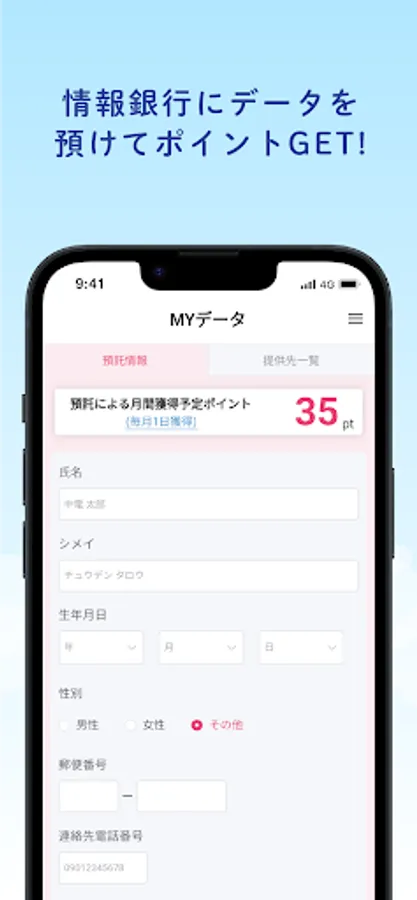 ◆ Deposit personal data to an information bank. Points can be earned according to the deposited data, and the accumulated points can be exchanged for vouchers that can receive benefits at local shops!