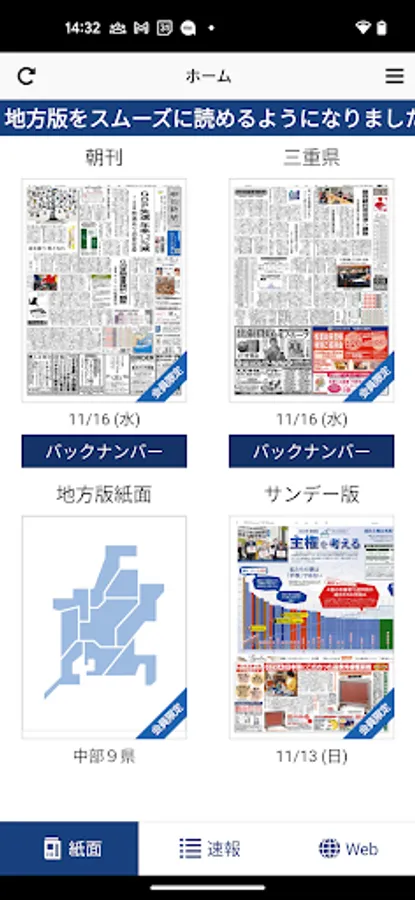 The app is free, but in order to read the page image, you need to register as a member of the internet service "Chunichi Shimbun Plus" for subscribers. Those who have monthly subscriptions to the Chunichi Shimbun, Hokuriku Chunichi Shimbun, and Nikkan Kenmin Fukui morning papers can register for free.