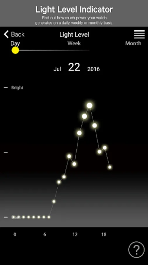 See how much light—and power—your dial is getting. Find out how much power your watch is generating by tracking the light it’s exposed to on a daily, weekly or monthly basis. This unique function reflects CITIZEN’s status as a pioneer of light-powered technology.
